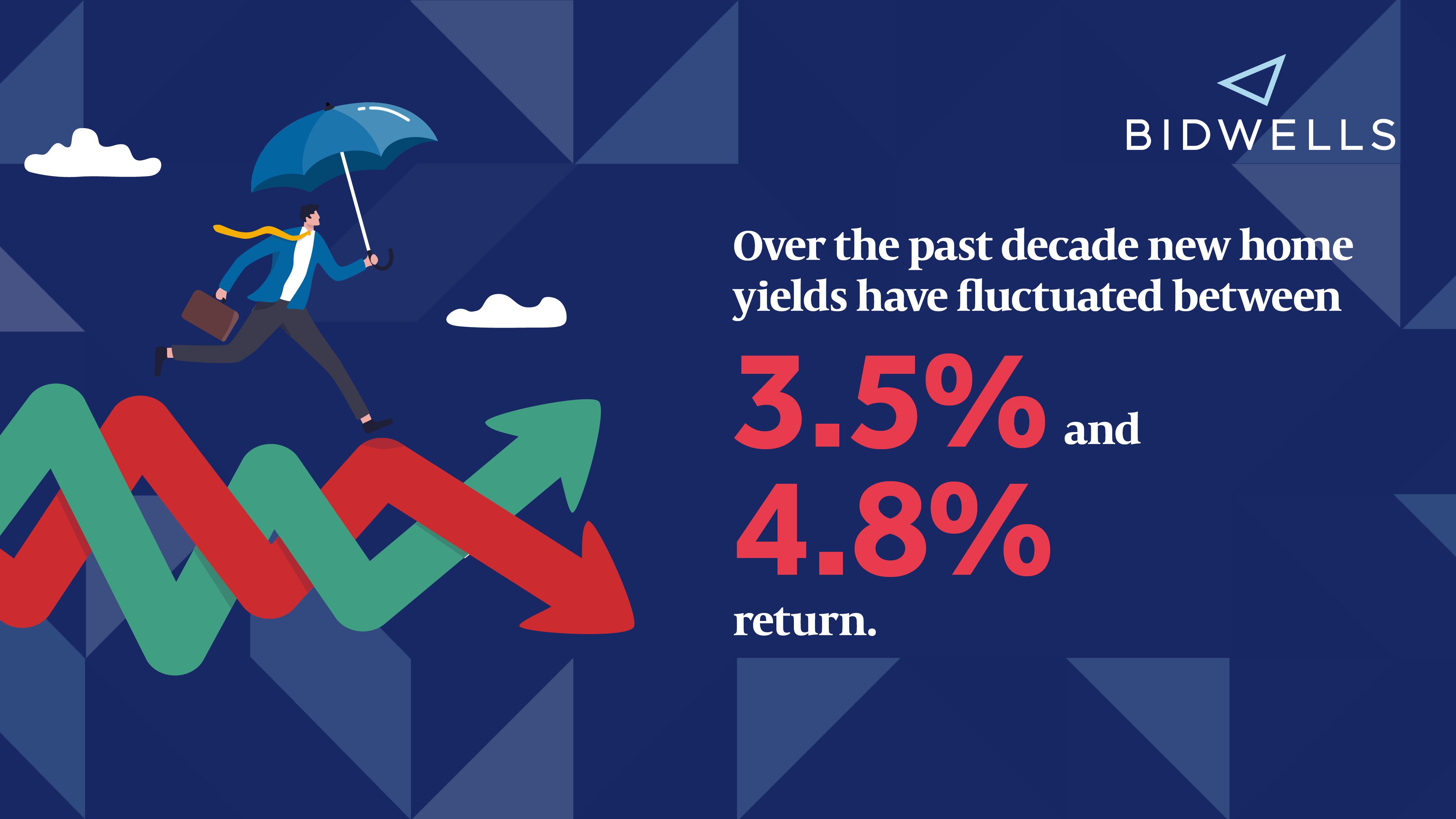 The yield curve is traditionally used to demonstrate the relationship between debt and different maturity rates for bonds. We are using something simpler to demonstrate how the balance of rental income and capital growth impacts the investor return on new homes in Cambridge.