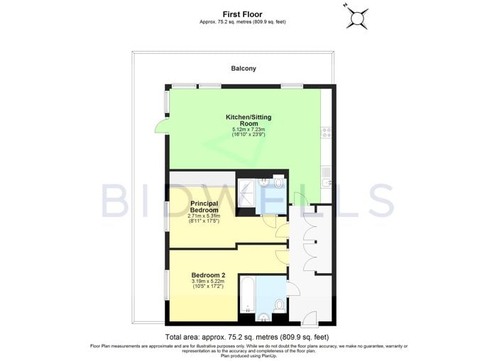 • Spacious dual aspect Kitchen/Sitting Room with wood laminate flooring, doors to Balcony
